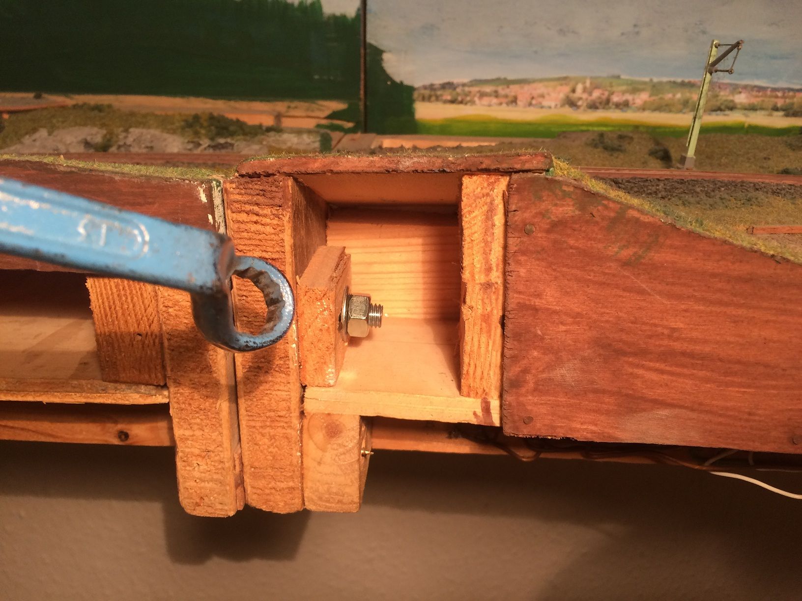 Elenastein habe ich im Jahr 2007 gebaut, Abmessungen sind 410x53x36 cm BxTxH, sie ist in wenigen Minuten in drei Segmente teilbar und in jedem VW-Golf transportabel. Das habe ich auch schon bewiesen, als ich sie damals zum Rhein-Main-Treff oder zur Ausstellung im Eisenbahnmuseum Darmstadt-Kranichstein mitnahm. Kann auf Sideboard abgestellt oder auf Regalschienen an der Wand befestigt werden. Das Besondere ist, daß es nichts Besonderes gibt: kein Riesen-Bahnhof, keine Drehscheibe, keine phantastischen Rangiermöglichkeiten ... einfach ein Stück Strecke zum Rollen-Lassen. Aber viel Eigenbau. Im Herbst 2018 über ebay verkauft in die Nähe von München. Bei mobablog gibts über 100 Fotos: