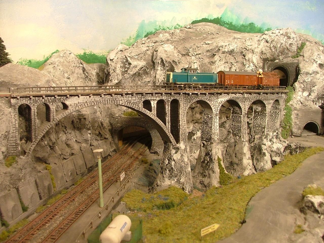 Habe 2004+2005 N-Mittelgebirgs-Anlage "Matthiasberg" gebaut, klassisch analog, 180x75 cm mit drei Ebenen, drei Stromkreise, 2/3 der ca 20 m Gleise verdeckt, damit man nicht vorher weiß, welcher Zug wo rauskommt. Sehr detailliert, aber doch zu sperrig und schwer, in 2015 über das 1zu160-Forum verkauft.