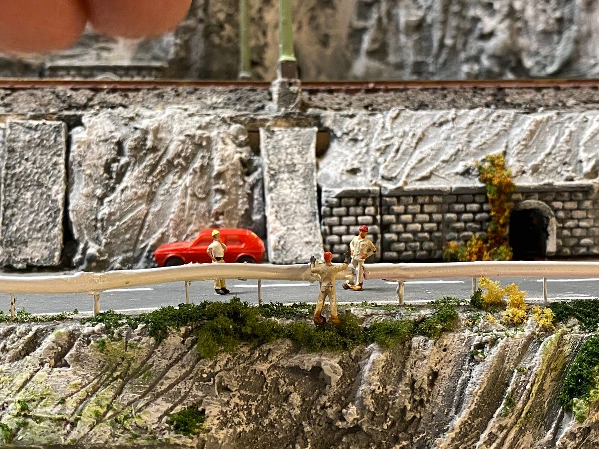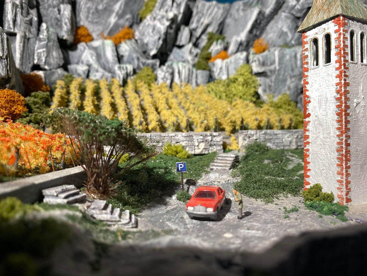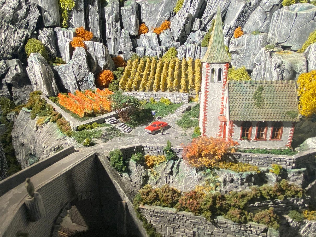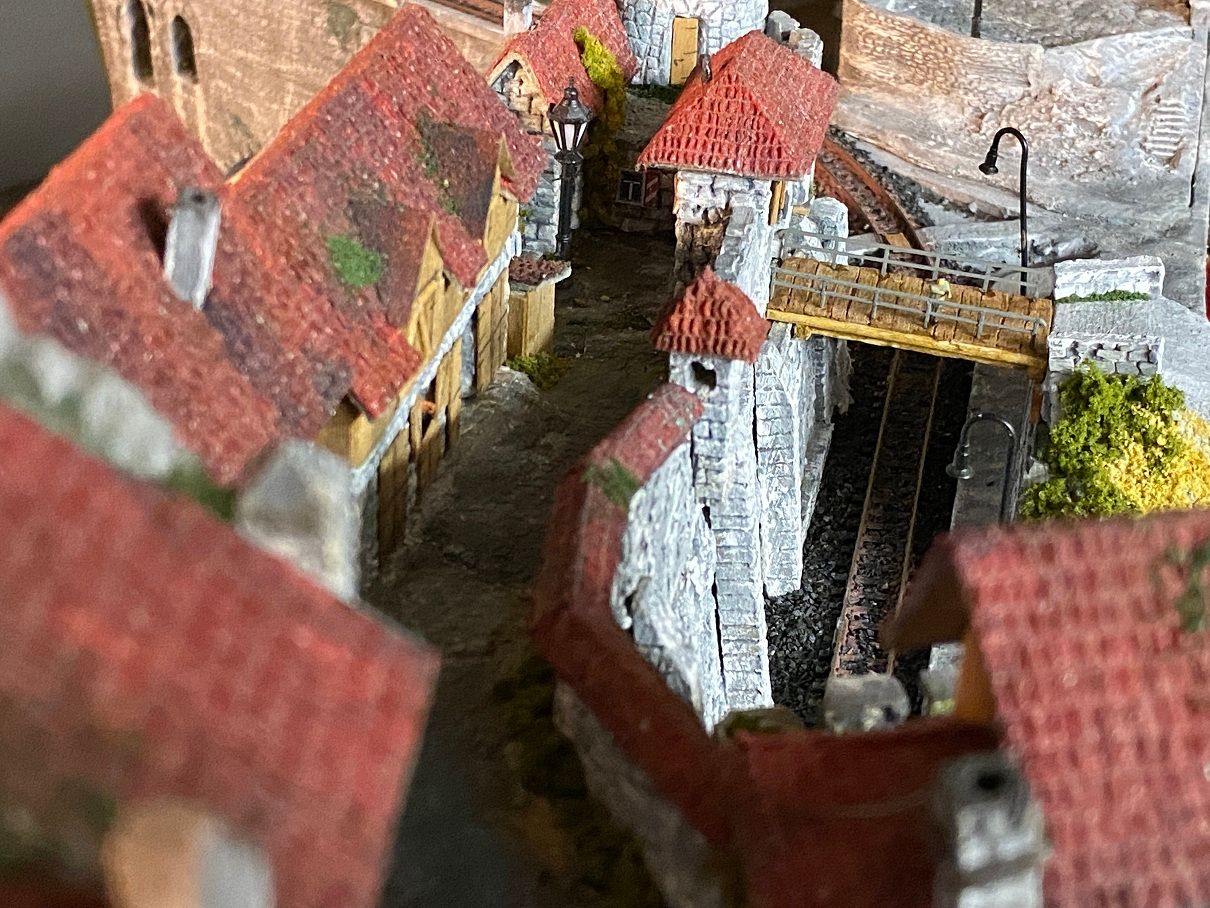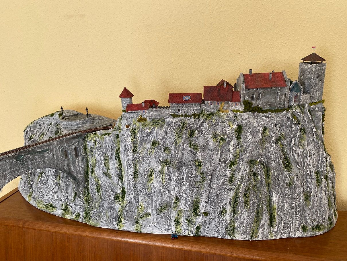 Von Mai 2020 bis März 2021 nach 10 Jahren Spur-N-Pause wieder kleine, in sich abgeschlossene N-Anlage begonnen: Schober Schlucht und Burg Olbertz, den Bau im 1zu160-Forum live dokumentiert. Sie sollte in unserem VW Caddy Maxi transportabel sein, das waren meine Vorgaben für die Abmessungen. Mit der Namensgebung wollte ich zwei Spur-N-Kollegen ehren. Bewußt wurde die Anlage höher als tief, man sollte nicht wie bei anderen Anlagen von oben auf eine mehr oder weniger flache Platte schauen können, sondern seitlich in eine Schlucht mit hohen Felswänden hinein. Aus der ursprünglich geplanten kleinen Burg im Vordergrund wurde durch die Kommentare im Forum eine immer größere Burganlage. Von Anfang an war mein Plan, sie einem Modellbahn-Magazin zur Veröffentlichung anzubieten und dann zu verkaufen - habe ich bis heute aber nicht in Angriff genommen.